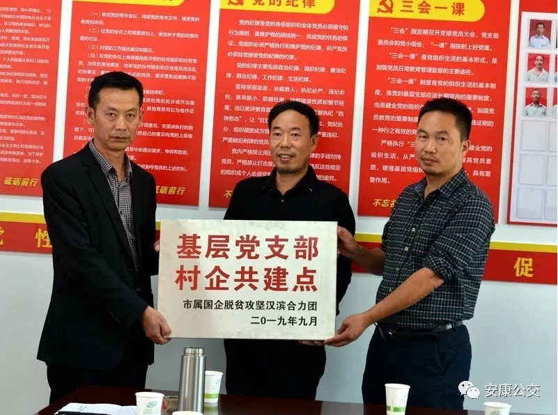 (市公交公司黨委副書(shū)記錢萬(wàn)輝和市水務(wù)集團(tuán)公司總會(huì)計(jì)師陳世安共同為“基層支部村企共建點(diǎn)”授牌)