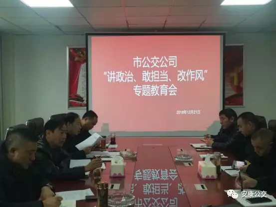 12月24日上午,市公交公司黨委召開(kāi)“講政治、敢擔(dān)當(dāng)、改作風(fēng)”專題教育會(huì),黨委書記、董事長(zhǎng)張曉強(qiáng)主持會(huì)議并講話,公司黨政領(lǐng)導(dǎo)班子成員參加會(huì)議,中層以上干部列席會(huì)議。會(huì)議傳達(dá)學(xué)習(xí)了市國(guó)資委《關(guān)于在全市工信(國(guó)資)系統(tǒng)領(lǐng)導(dǎo)干部中開(kāi)展“講政治、敢擔(dān)當(dāng)、改作風(fēng)”專題教育實(shí)施方案》、市紀(jì)委《關(guān)于集中開(kāi)展違規(guī)收送禮金問(wèn)題專項(xiàng)整治的工作方案》《關(guān)于集中整治形式主義、官僚主義的工作安排》等文件。